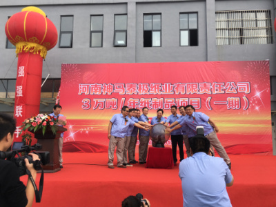 2017年9月29日,河南神马泰极纸业有限责任公司一期投产仪式隆重举办,这是神马集团和泰极集团强强联手,谱写新的篇章的起点,这是信任的延伸和升华,是融合双方资源,实现资源互补,年产值将达到3万吨的生产规模。泰极将以精湛的技术、卓越的产品、真诚的态度、一流的服务,打造中原地区最大的化仟纸管、工业纸管、纸质蜂窝板的生产商。此次开业投产仪式,是全新的起点,神马泰极将扬起风帆,快速驶进市场经济的大潮。
